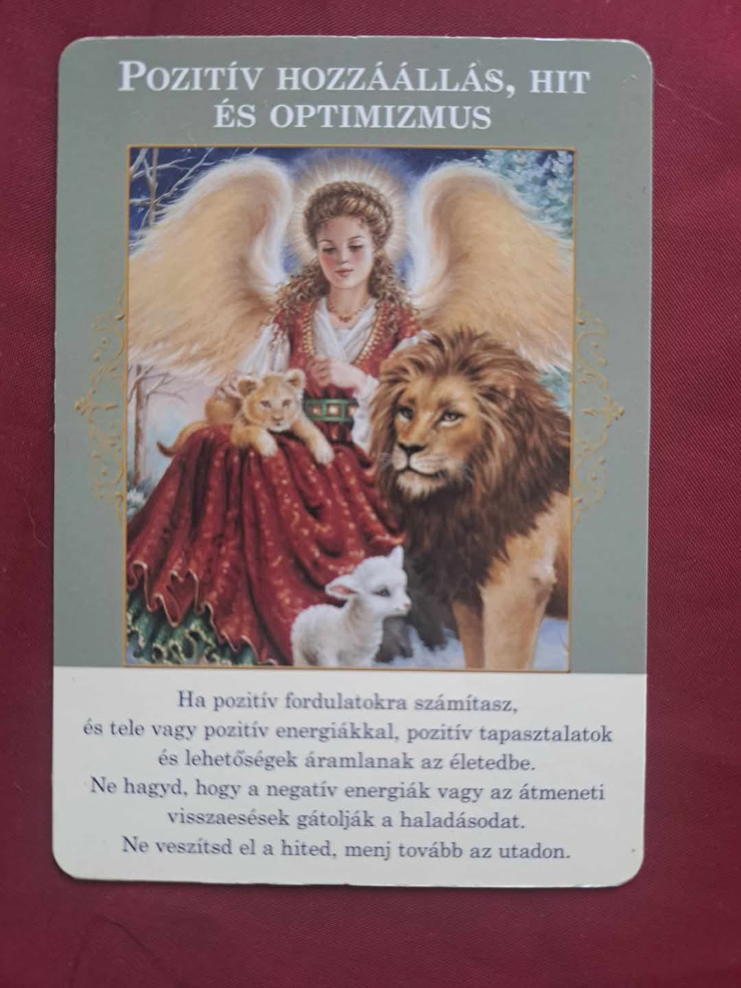 Ez a lap arra emlékeztet, hogy Isten és az Univerzum támogat téged. Az aggodalmad az egyetlen akadály. Egy apró változtatás- egy kicsivel több hit- pozitív változást jelenthet a bőség áradásában. imádkozz segítségért, hogy az aggodalmak eltűnjenek, és optimizmus lépjen a helyükbe. Emlékezz rá, hogy Isten vigyáz rád és szeretteidre, mint egy gondoskodó szülő. Isten tiszteletben tartja a szabad akaratodból meghozott döntéseidet; ha negatív kijelentéseket teszel a pénzügyeiddel kapcsolatban, nem fog ellenkezni. Bízz benne, hogy Isten végtelen bölcsessége és kreativitása máris megtalált számodra minden megoldást. Ezek a megoldások, ötletekként és intuícióként érkeznek hozzád,amikor ellazulsz, és jobban hallod a belsőhangod- Isten hangját. A pozitív hozzáállás igen hasznos, ha célunk a nagyobb bőség. A pénz nem más, mint energia, és mi ezt az energiát szeretnénk magunkhoz vonzani. Ahogy természetesen ódzkodunk attól, hogy negatív emberekkel töltsük időnket, a pénz is inkább a pozitív emberekhez csatlakozik. Ugyanez igaz a bőség minden más formájára. ha például szeretnél egészségben bővelkedni, és pozitívan beszélsz és gondolkodsz az egészségedről, az sokkal hatásosabb, mint a negatív hozzáállás. A pozitív szavak és gondolatok mögötti energia minden helyzetet kedvezően alakít. Áldással, Ava